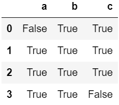 # 행별로 OR연산을 수행한다 # axis=1을 지정하지 않으면 열(컬럼)별로 OR 연산을 수행한다 (ex1_df.loc[:,'a':'c'] >= 0).all(axis=1)