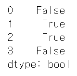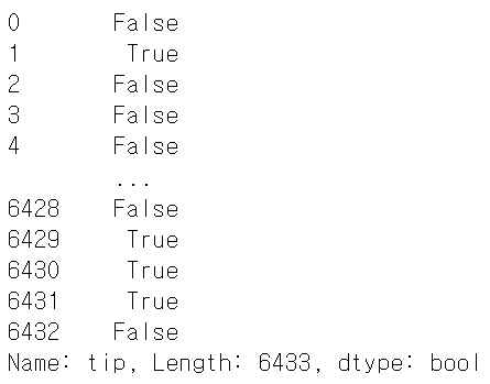 위 그림과 같이 각 인덱스에 조건 해당하면 True 해당하지 않으면 False를 가진다.