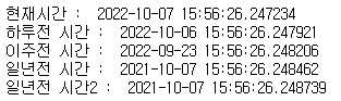 1.현재 시간 출력하기 및 과거/미래 시간 계산하기