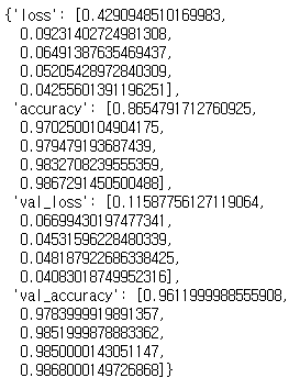 history 변수에 모델의 학습이력이 저장되어 추후 확인 가능하다.