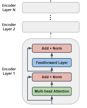 각 Encoder Layer는 Multi-head Attention과 Feedforward Layer로 구성되어 있고,