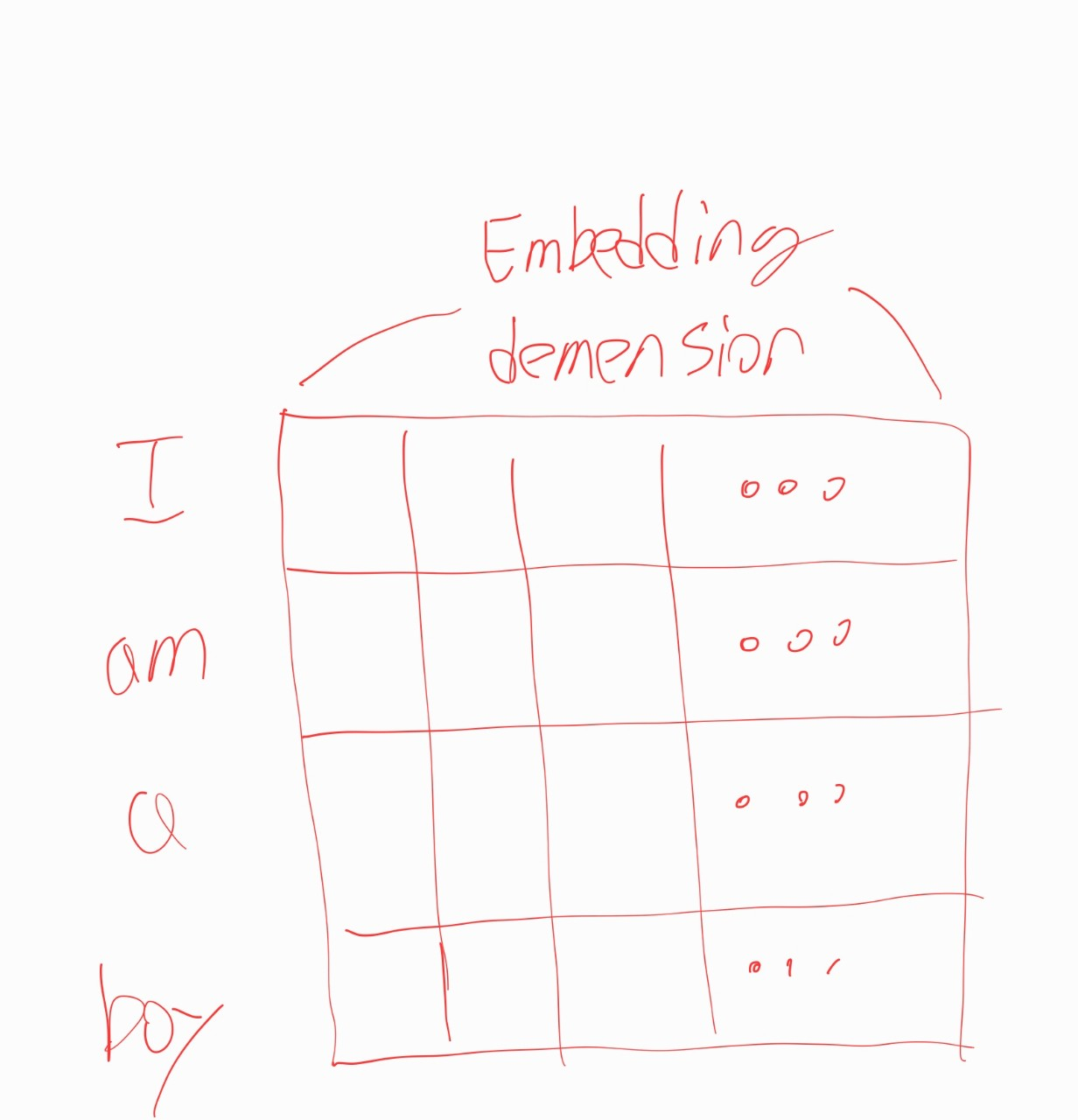 "I am a boy"의 경우 (4*{embedding demesion})차원의 행렬이 생성됨.