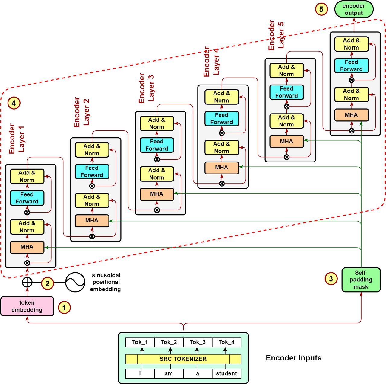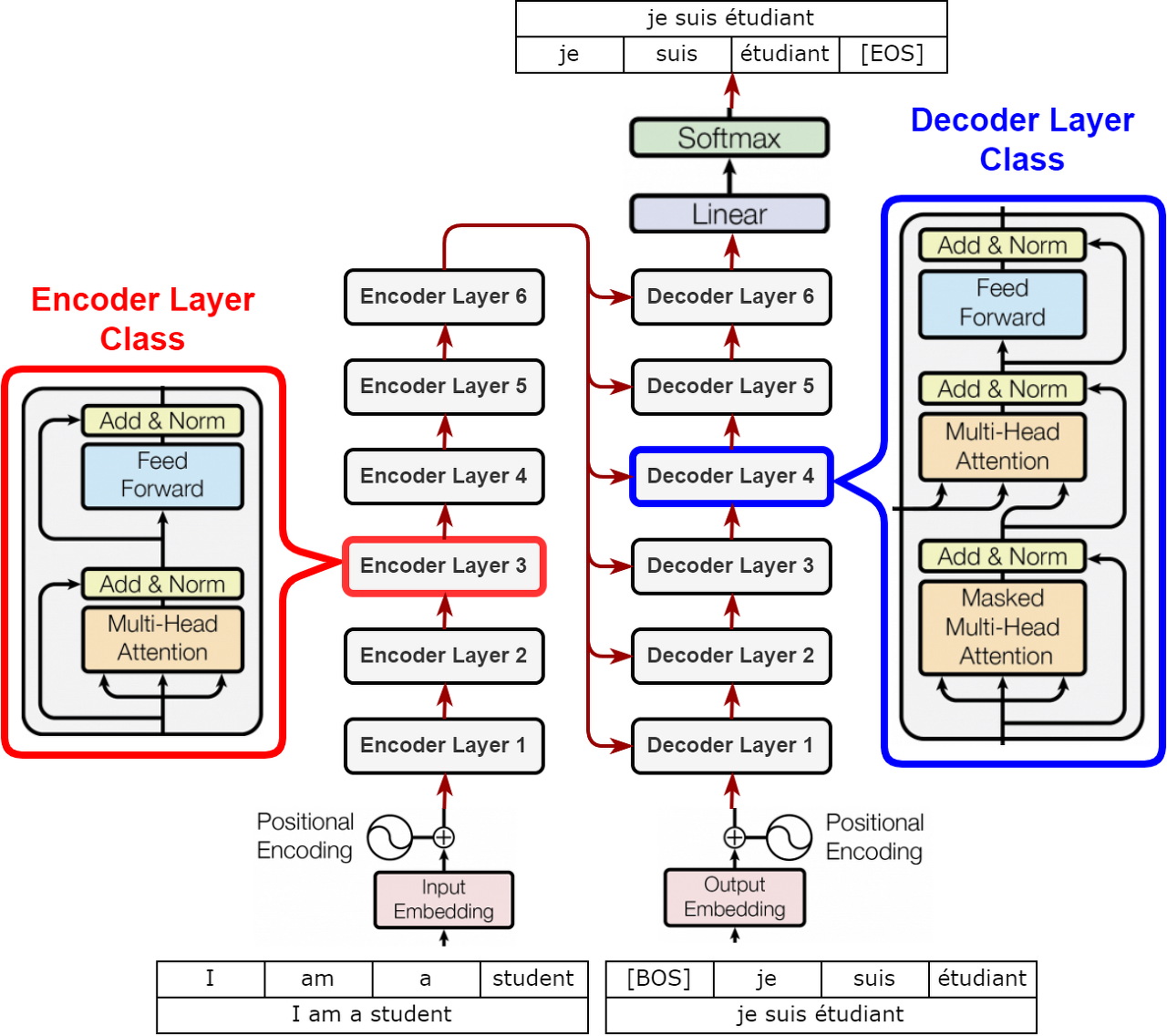 Encoder Layer는 아래의 빨간 박스와 같이 구성되어 있으며,