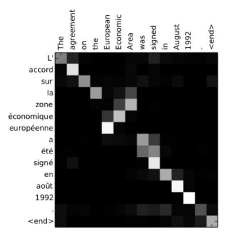 인코더와 디코더에 각각 사용된 언어에 대해서 어떠한 단어끼리 높은 연관성을 가지고 있는지 직관적으로 확인 가능하다.