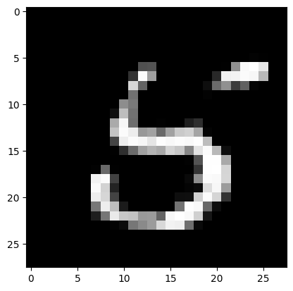# 랜덤한 한개의 random_z를 생성하여 이미지가 어떻게 생성되는지 확인 random_z = tf.random.normal([1, latent_dim]) # 생성자에 random_z입력하여서 fake data생성 g_z = generator(random_z) # 생성된 fake data 시각화 plt.imshow(g_z[0, :, :, 0], cmap='gray') plt.show()