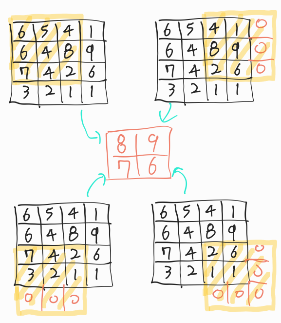 이때, stride와 padding에 따라서 maxpooling이 어떻게 동작하는지 case별로 확인해본다.