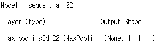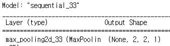 model = tf.keras.models.Sequential() model.add(MaxPool2D(pool_size=(3, 3), strides=(2, 2), input_shape=(4, 4, 1))) model.compile('adam', 'mean_squared_error') pred = model.predict(input_image) model.summary()
