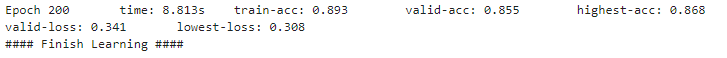 위에서와는 다르게 200 epoch가 모두 돌아갔다.