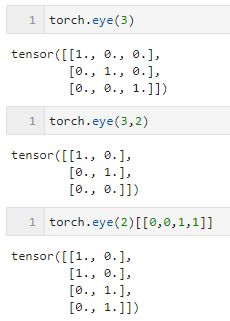 추가 인덱싱을 통해서 onehot_vector를 만드는데 사용하였다.하단에 간단한 torch.eye() 사용 예시를 첨부한다.