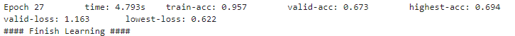 200 epoch를 돌게 입력되었으나, early stopping으로 인해서 27epoch에서 학습이 종료되었다.