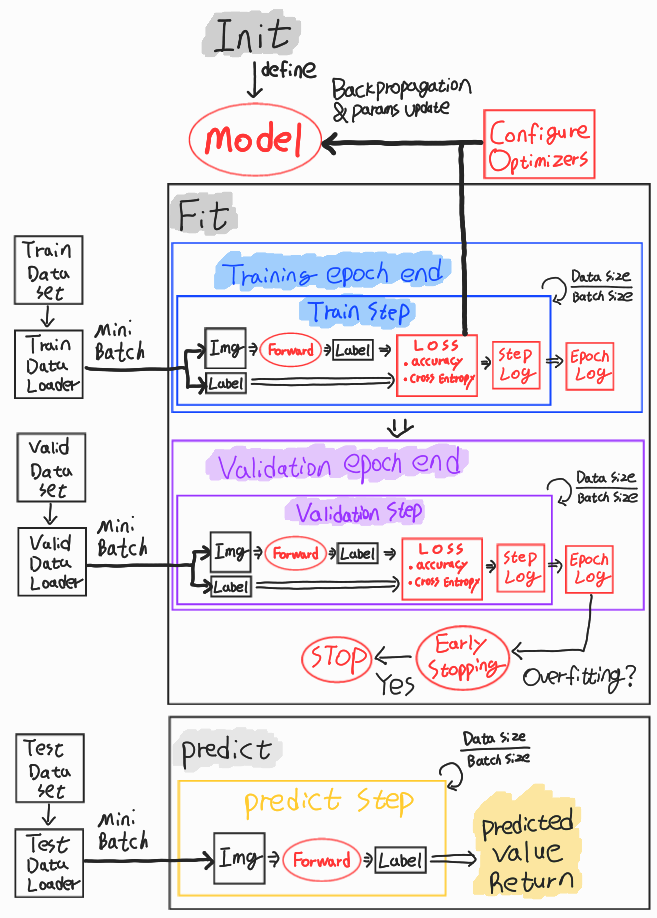 pytorch lightning의 전반적 동작 구조는 아래와 같다.