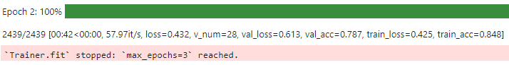 max_epoch의 설정에 따라서 3번만에 종료됐음을 알리는 메시지가 떠있다.