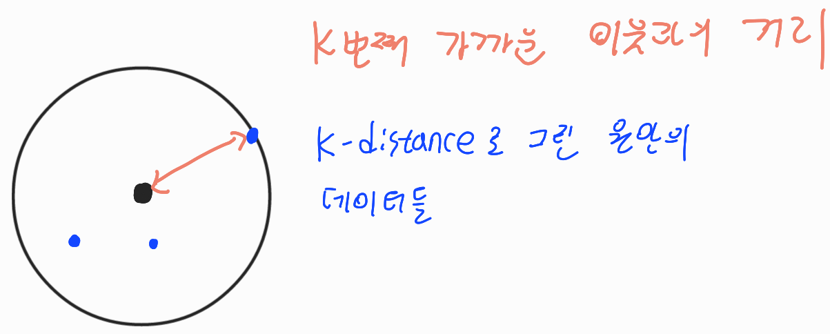 K-distance Neighborhood는 K-distance를 반지름으로하는 원안에 존재하는 데이터들을 의미한다.
