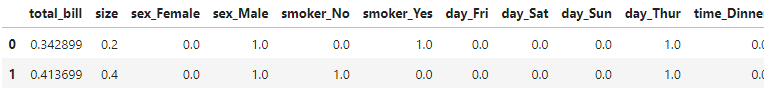test_df.loc[:,numeric_cols] = scaler.transform(test_df.loc[:,numeric_cols]) test_df.loc[:,target] = scaler_y.transform(test_df.loc[:,target]) encoded_df = pd.DataFrame(enc.transform(test_df.loc[:,categoric_cols]).toarray(), columns=enc.get_feature_names(categoric_cols)) test_df = test_df.drop(categoric_cols, axis=1) test_df = pd.concat([test_df,encoded_df],axis=1) test_X = test_df.loc[:,x_col_lst] test_X.head(2)