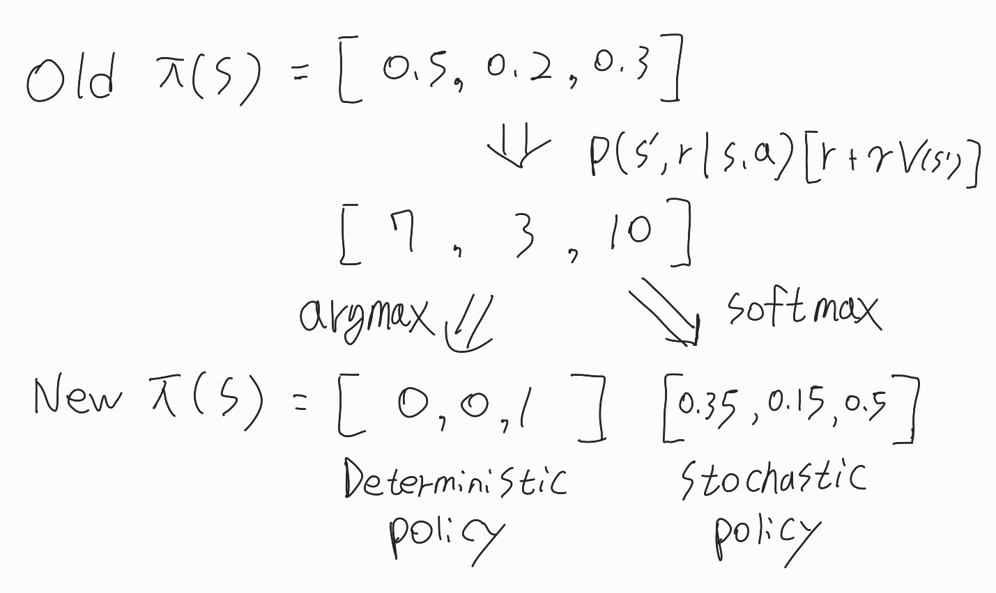 2) value function V(s)을 이용해 greedy하게 최적의 action을 선택하도록 \(\pi\)를 업데이트 한다. (policy improvement)