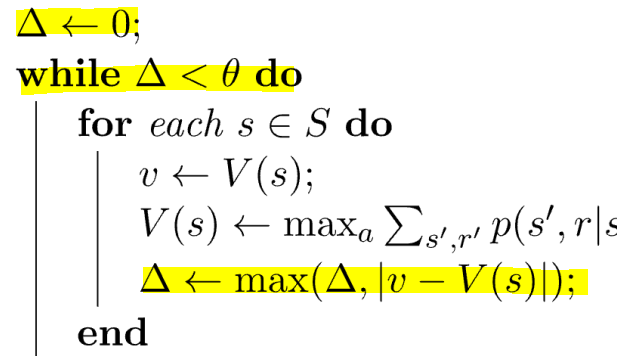 \( \Delta \) : V(s)와 New V(s)의 차이의 절댓값