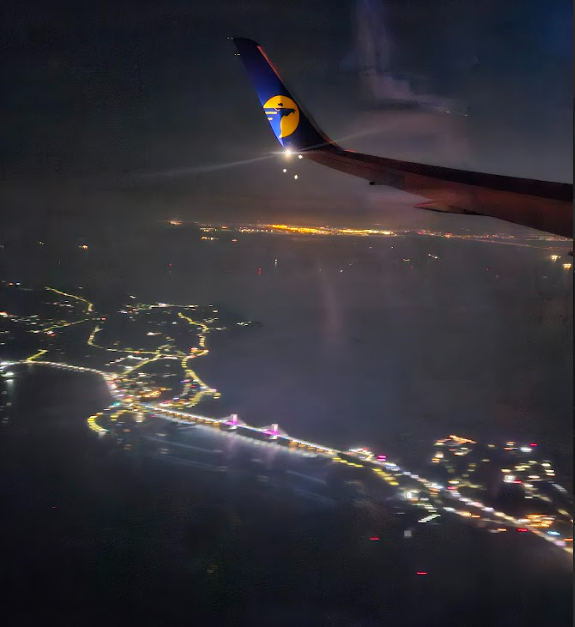 하늘에서 본 한국은 밤인데도 참 밝았다.
