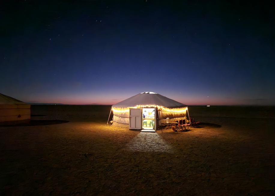 그리고 반짝전구를 둘러놓은 우리 게르.