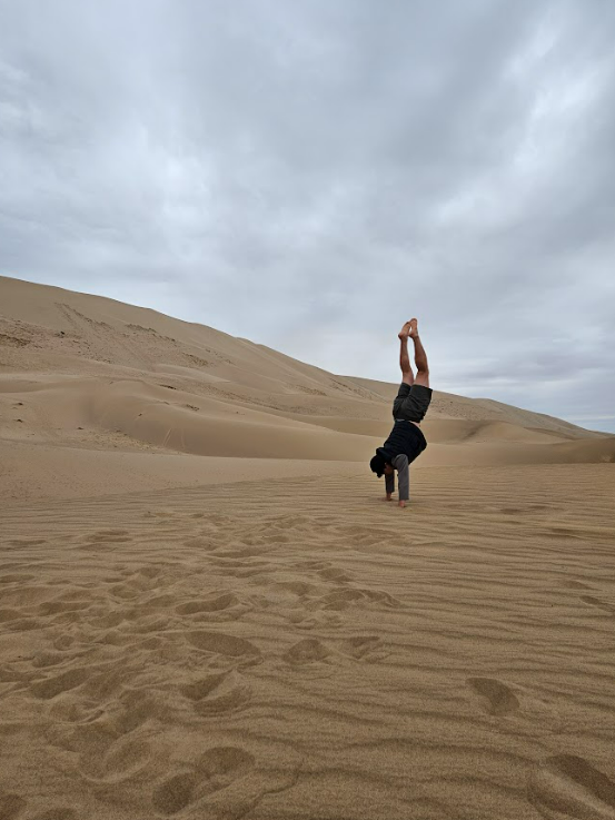 요가사진들을 많이 찍던데, 요가는 못하니 대신 물구나무라도