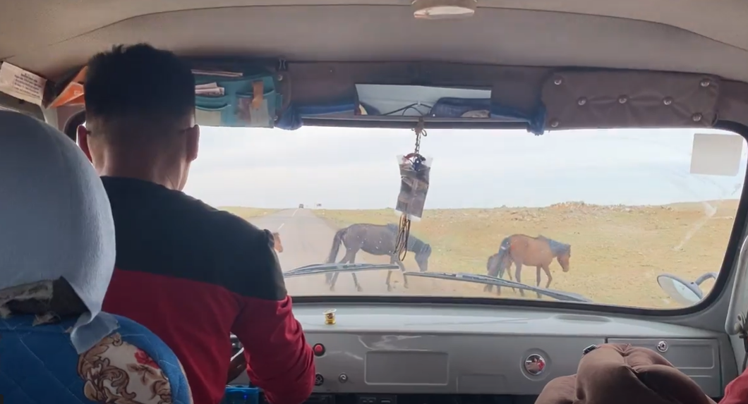 우리를 8일동안 태워주실 기사님과 몽골 도로위의 말.