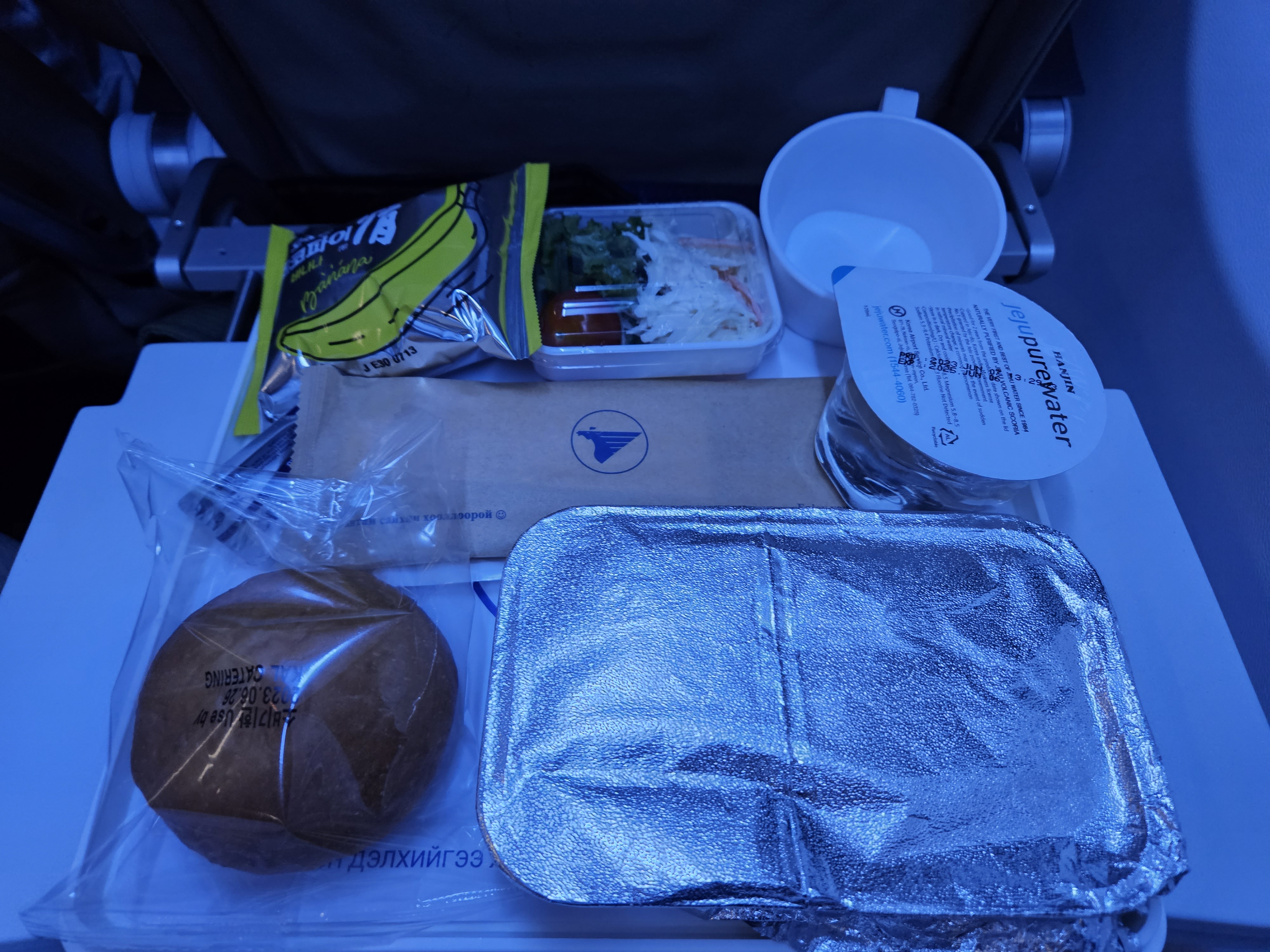 너무 졸려서 바로 잠들었는데 갑자기 비행기 불이 다 켜지면서 식사를 받았다.