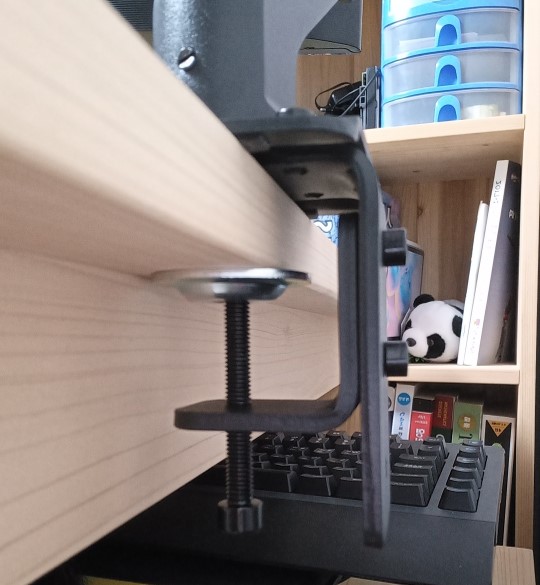 저는 책상에 모니터암 고정하는 부분을 자세히 보여드리겠습니다.아래 그림과 같이, 제 책상은 상판 및에 지지대가 존재합니다.
