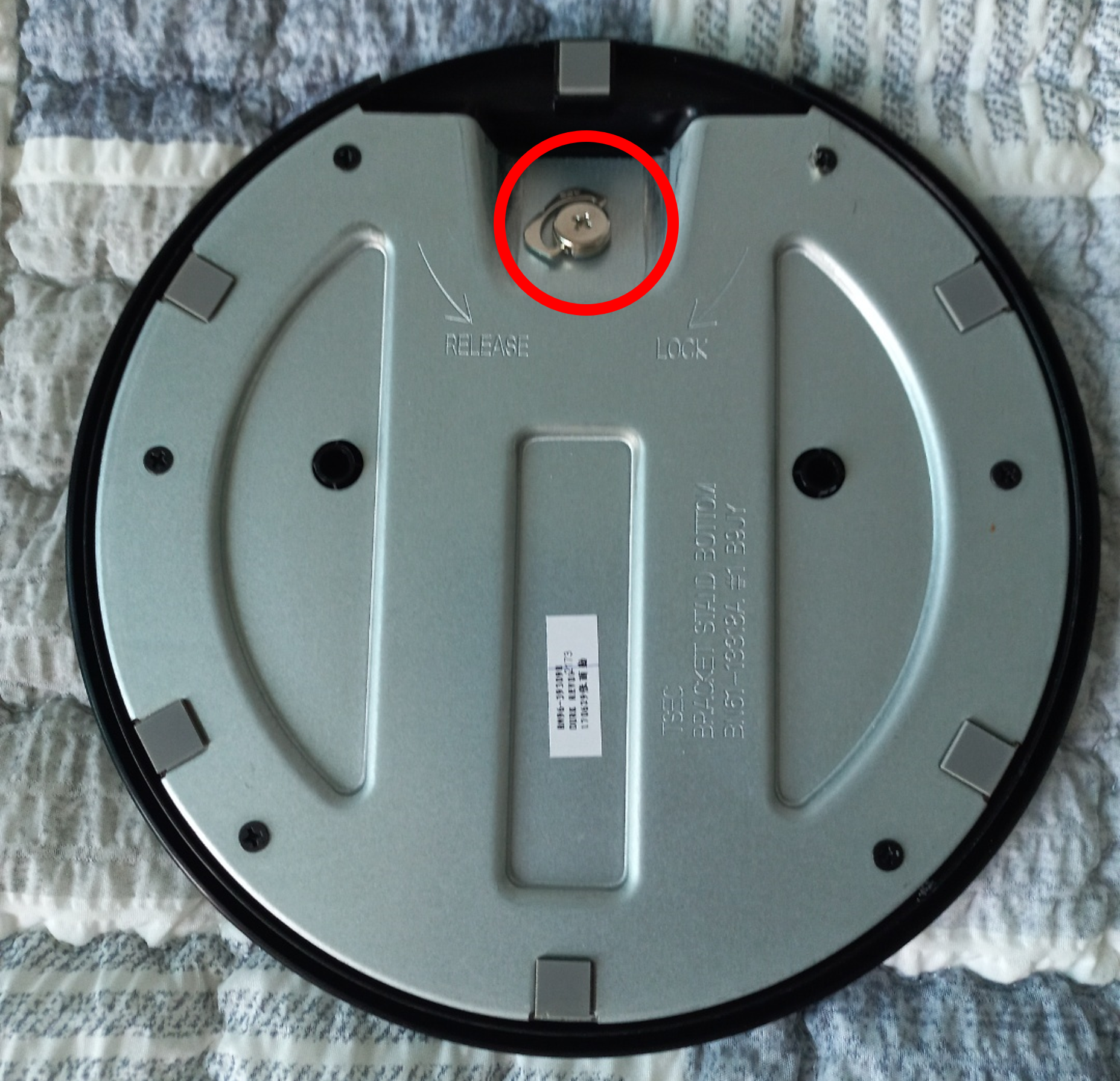 모니터 받침대 아래를 보면 다음과 같은 나사가 있습니다.