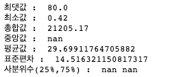 중앙 값과 사분위수가 nan으로 나타나는 것은 결측값(nan)이 섞여 있기 때문이다.