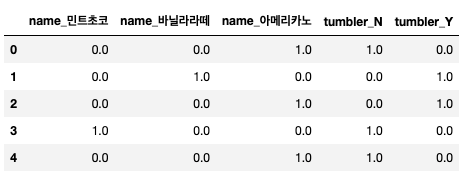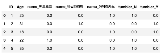 encoded_df에는 범주형 컬럼에 대한 One-Hot 인코딩 결과가 들어있다.