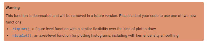 그 이유는 seaborn.distplot이 차후 버전에서 지원되지 않기 때문입니다.
