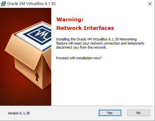 가상 네트워크 설정을 위해서 네트워크를 리셋한다는 메시지이다.