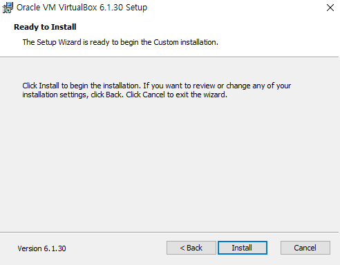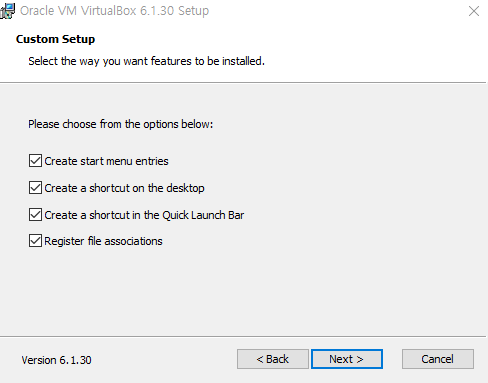 설치시에 마지막 체크박스를 풀지 않았다면 자동으로 VirtualBox가 실행된다.