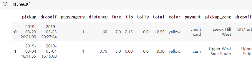 실험 및 예시에서 사용될 데이터는 seaborn에서 제공하는 "taxis" 샘플을 사용한다.